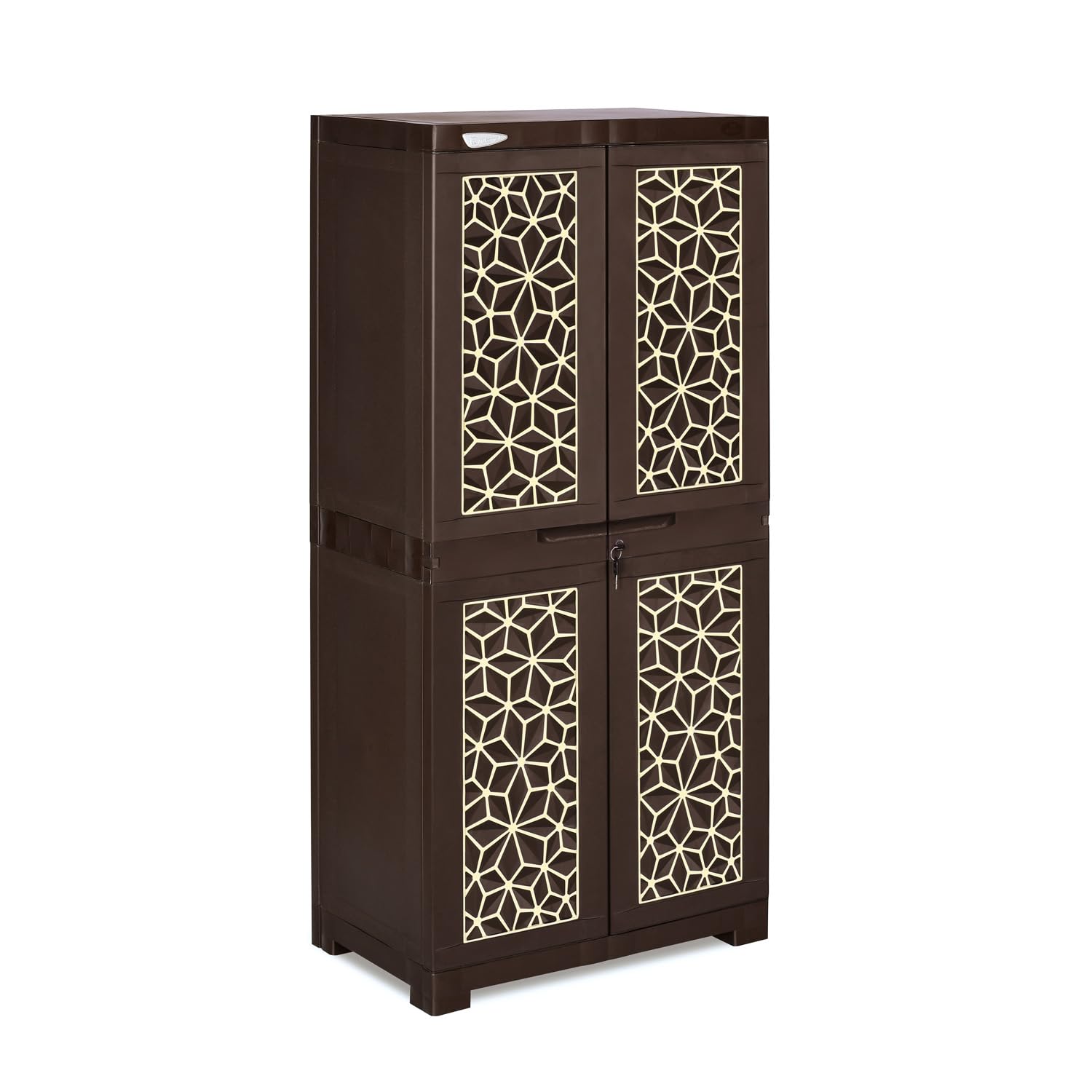 Nilkamal Freedom Big FMM Plastic Cabinet | 3-Year Warranty | 4-Shelf Storage Cupboard with Doors | Multi Organizer for Home, Wardrobe | Clothes Rack, Shelves, Almirah (Weathered Brown & Biscuit)